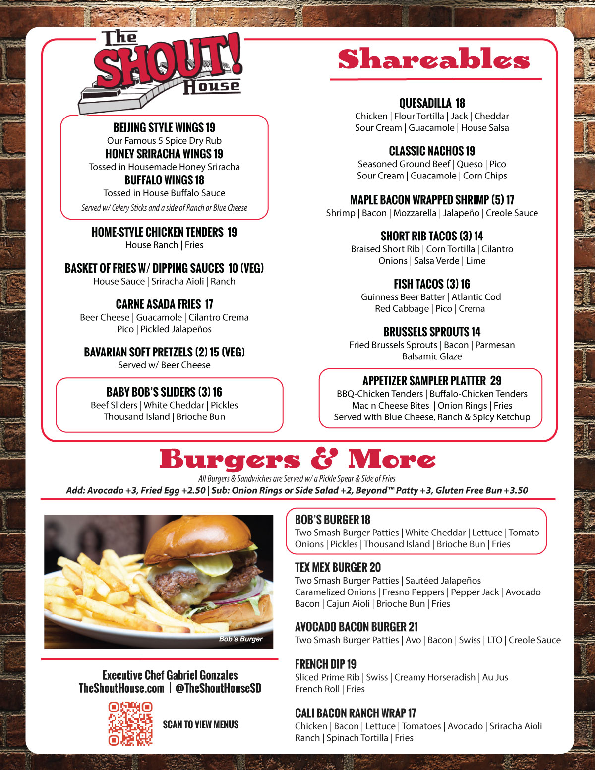 the shout house menu